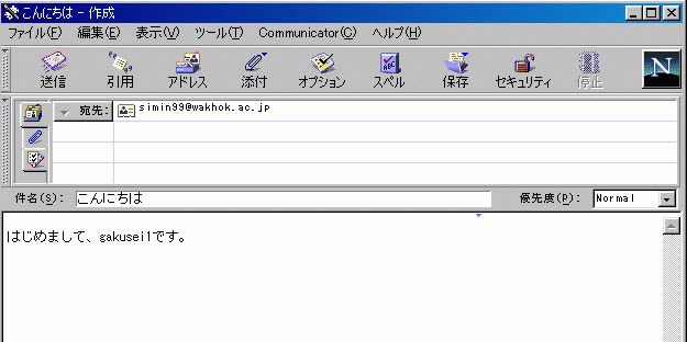 ウィンドウの中に、メールの本文を書き込みます。