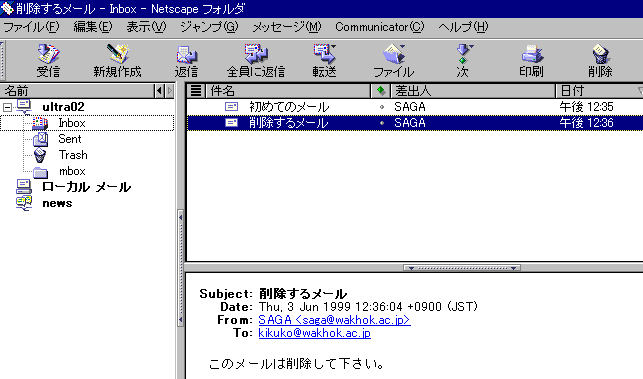 作業は単純です。削除したいメールをリストから選択し、