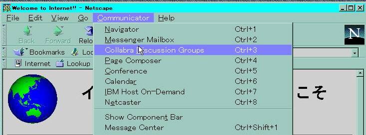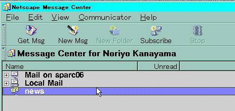 メッセージ・センターの起動は、メニューの Communicator の Collabra Discussion