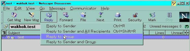 ここでは、Reply to Group を選んで下さい。Reply to Sender は、