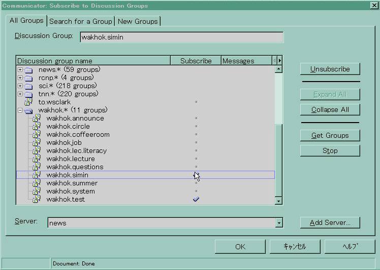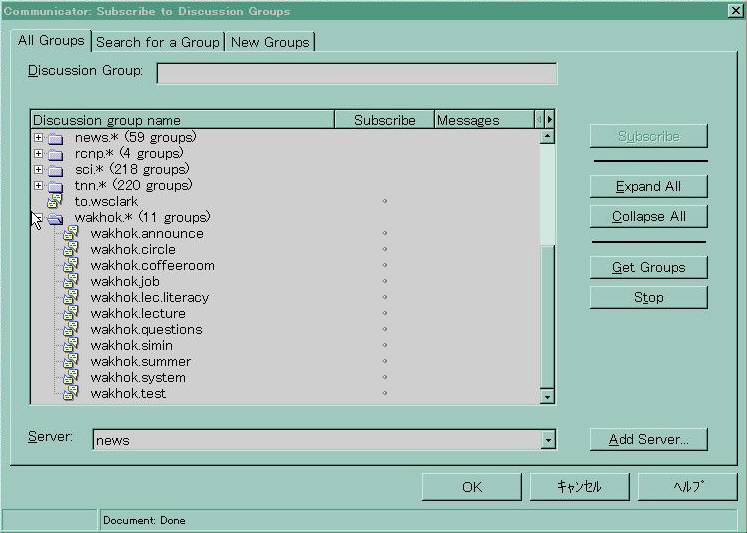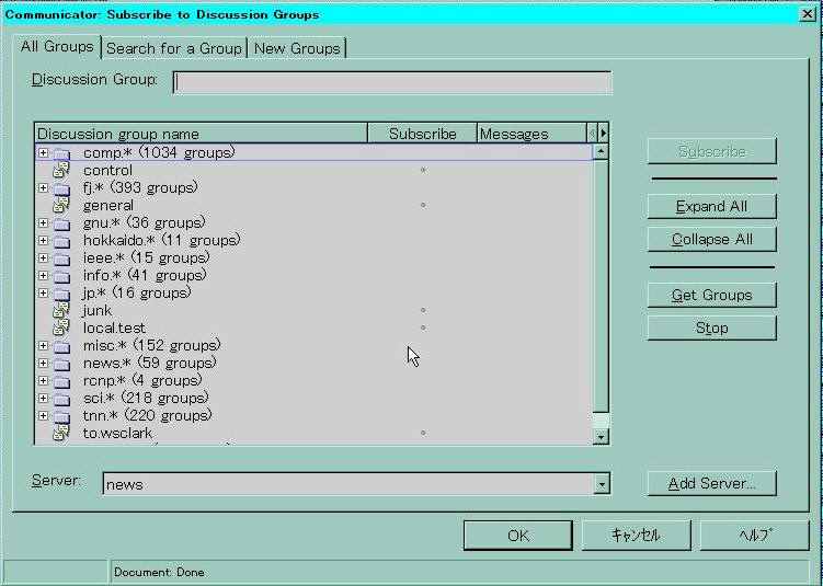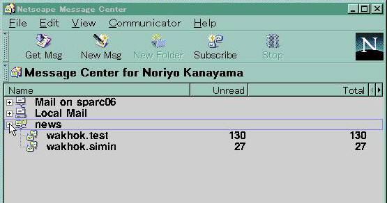 ネットスケープでニュースを読むためには、ニュース・グループを選択して、